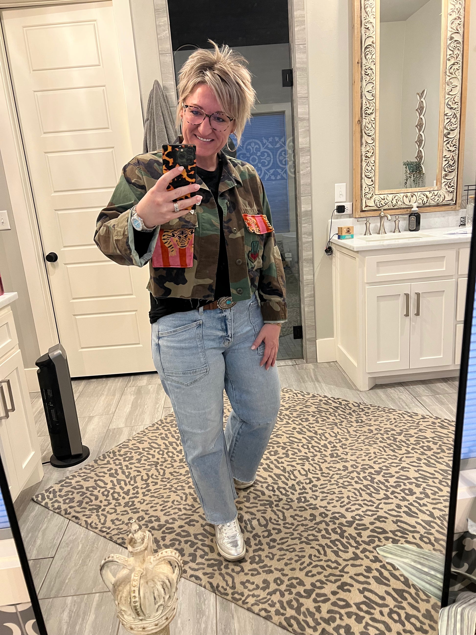 These Camo Jackets are all one of kind! Not a one is the same!! You can throw this jacket on and make ANY outfit FUN and unique!!