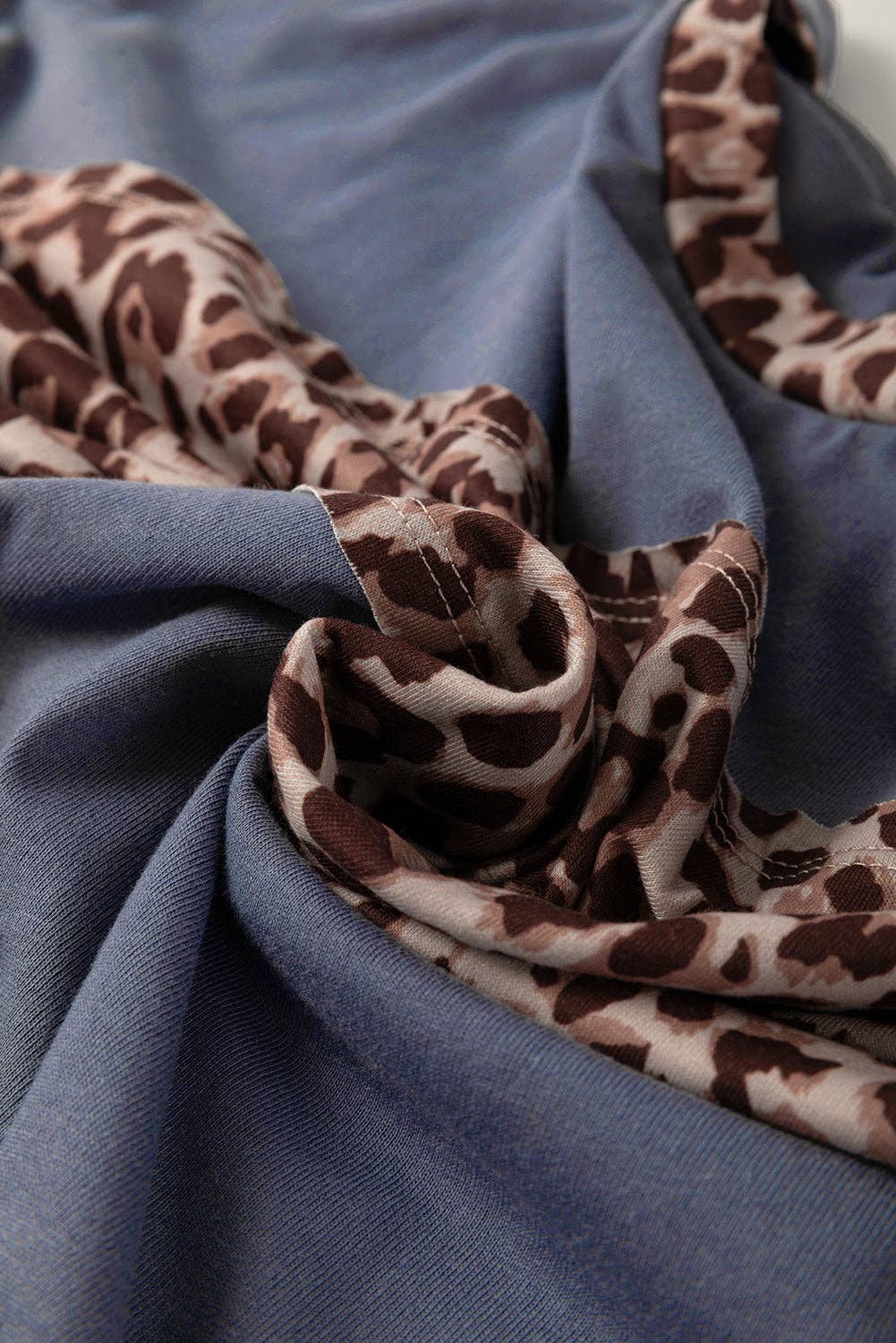 Leopard Colorblock Patchwork Long Sleeve Drop Shoulder Top