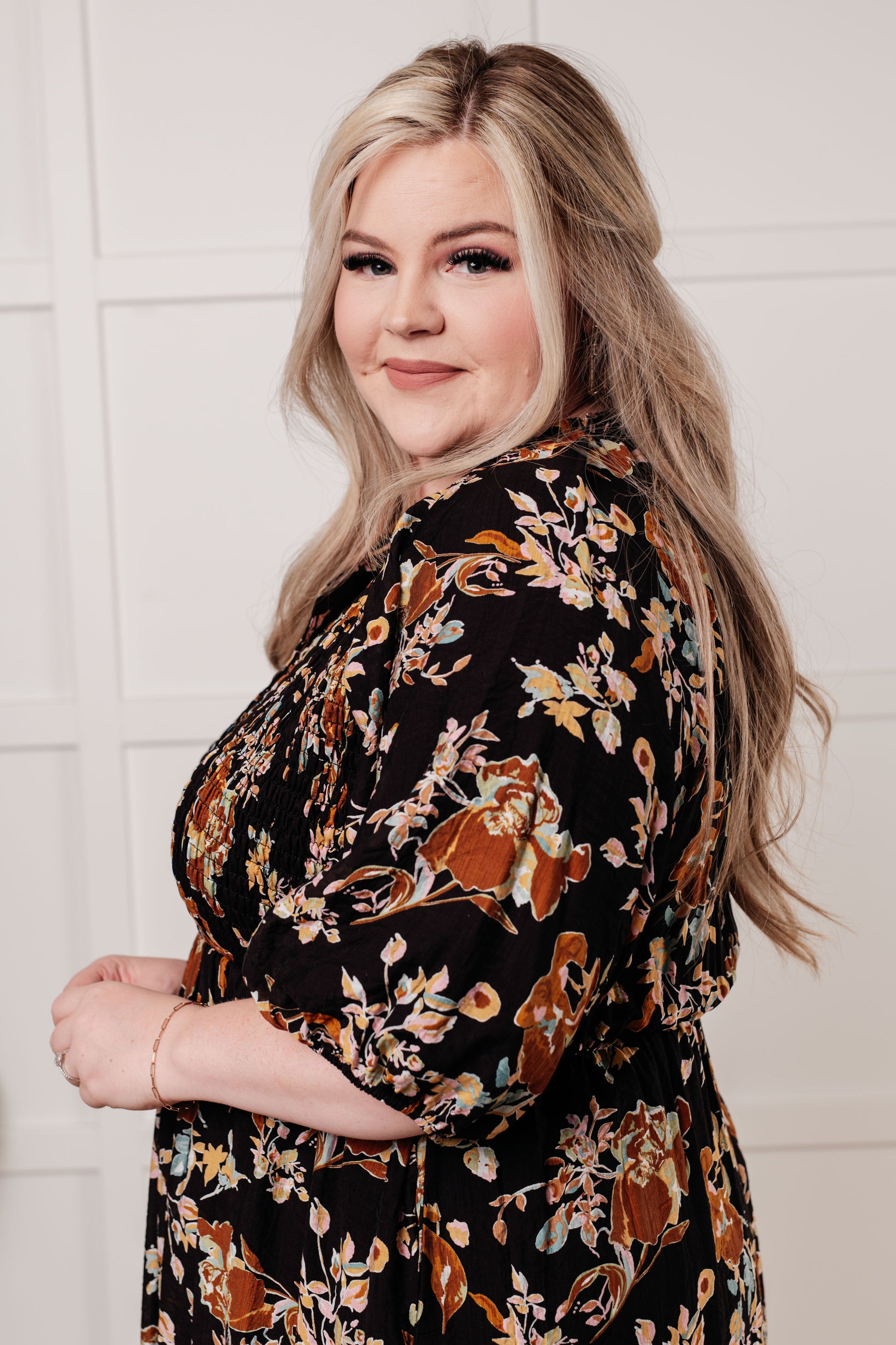 This Look My Way Smocked Bodice Button Down Dress is a must-have for your wardrobe! Made from crinkle woven fabric, it features a flattering V-neckline, smocked elastic bodice, and a button down front. The half balloon sleeves with cased elastic cuffs add a touch of charm, while the functional side pockets provide convenience. Perfect for any occasion, it also boasts a midi length, ruffle details, and lining. Get ready to turn heads wherever you go!