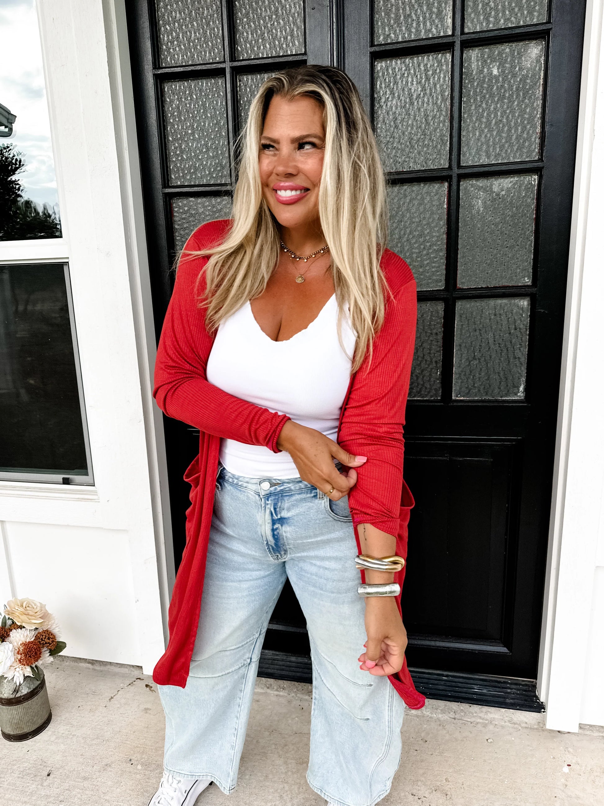 One of our absolute best selling cardigans, now in fall colors! Perfect ribbed cardigans that feature oversized side pockets and thumb-hole sleeves. These are the OG best selling Sierra ribbed cardigan! Perfectly soft, lightweight and stretchy fabric.